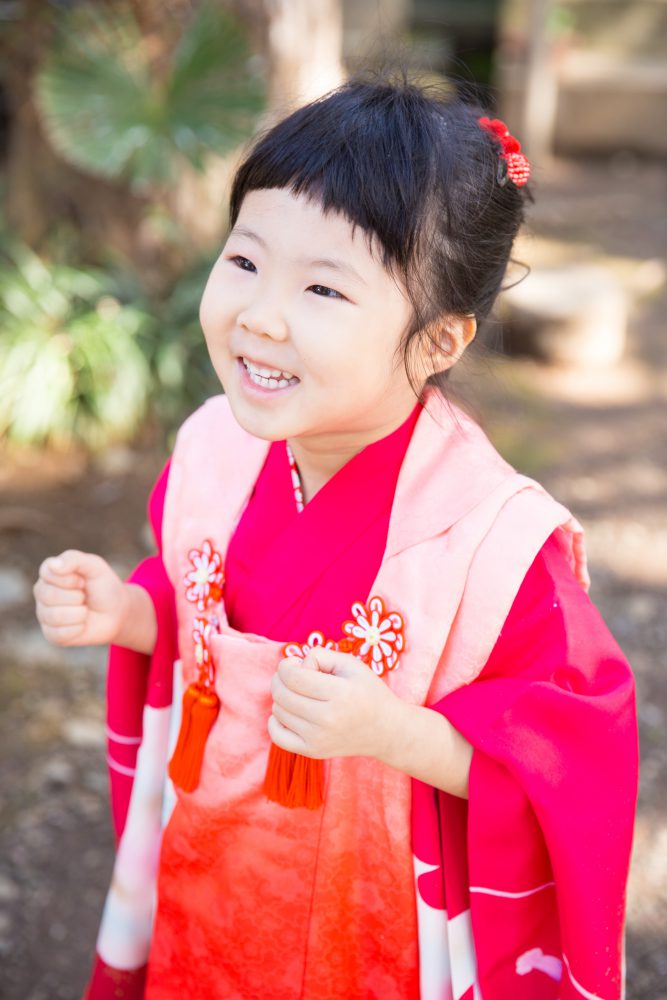 事前打ち合わせで撮影できるか少し心配されていたので「日本のお姫様になるんだよ」と伝えて3歳着物の女の子の写真を見せてあげてください♪とお伝えしたところ