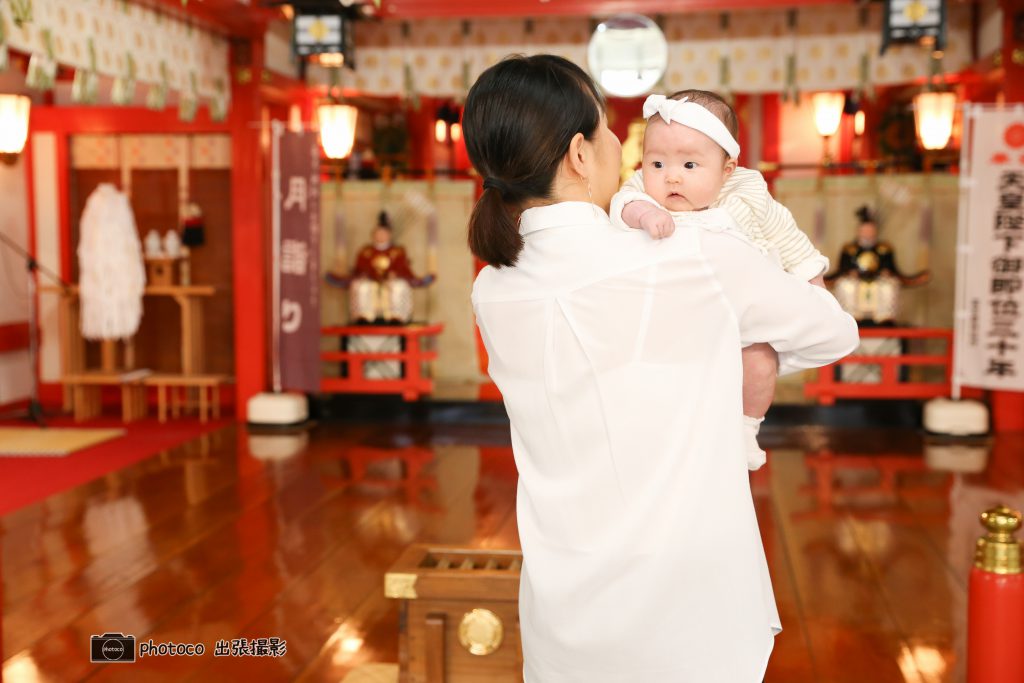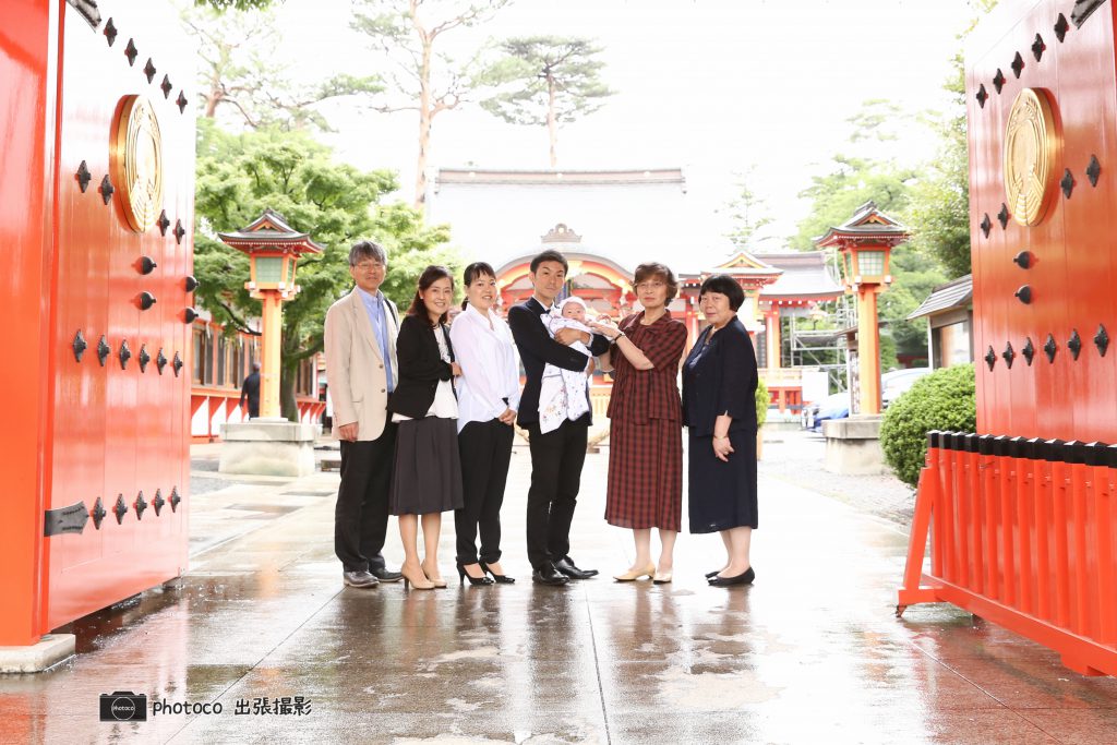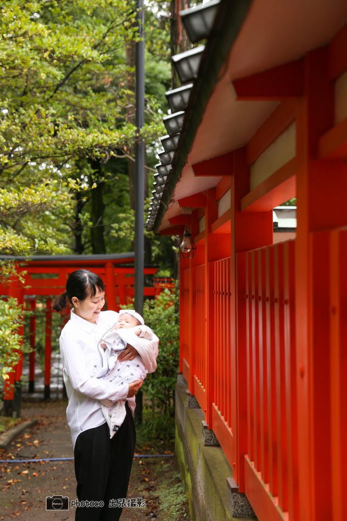 先日、朱色が美しい神社でお宮参りの撮影をしました。