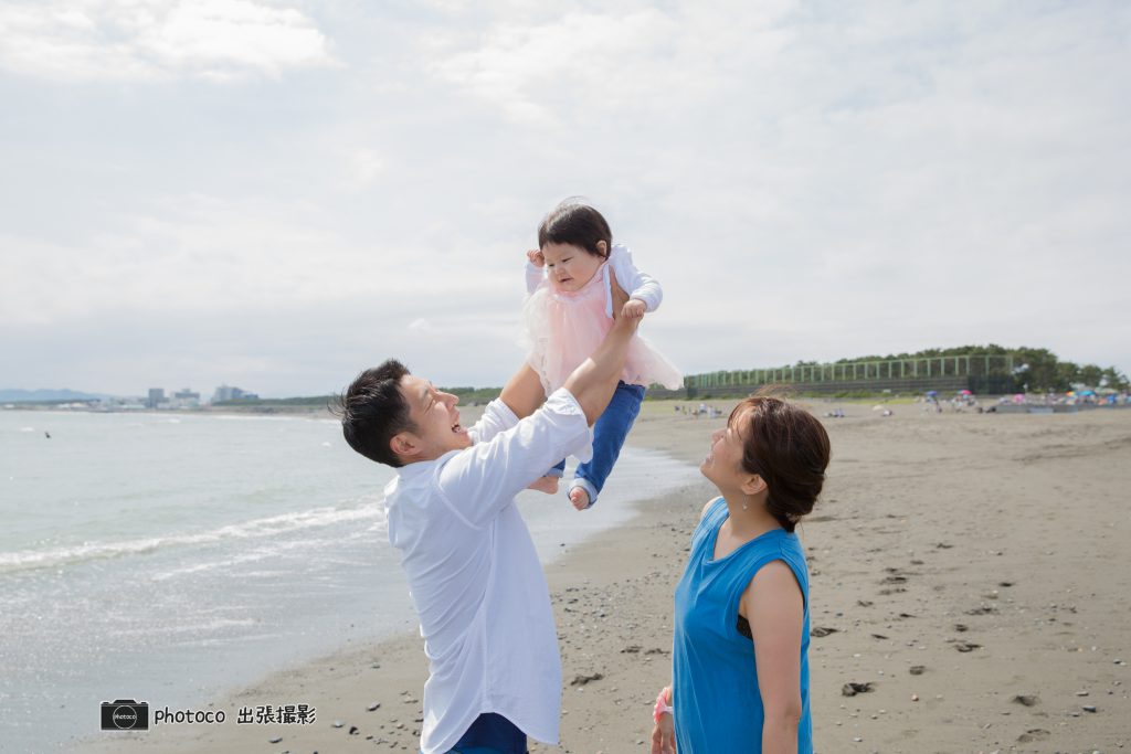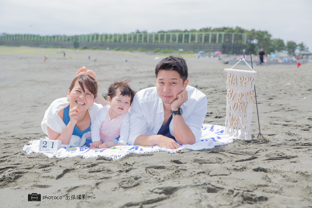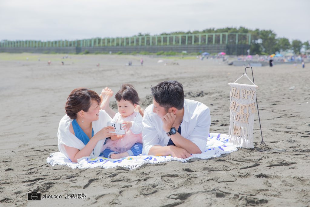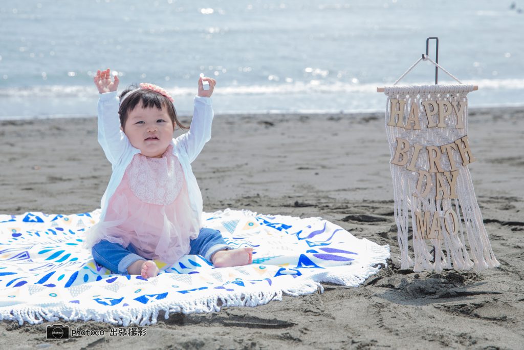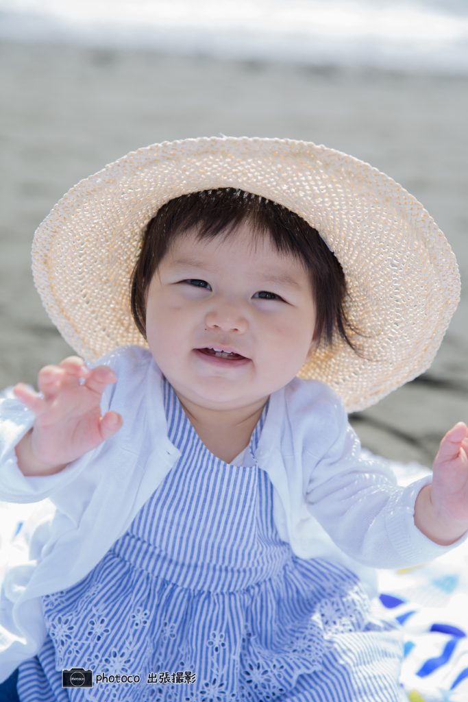 海で1歳の女の子のお誕生日記念の撮影をしました!
