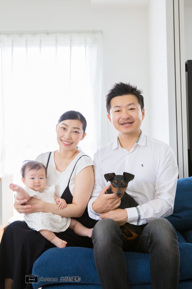 普段なかなか撮影できないワンちゃんと一緒の家族写真。